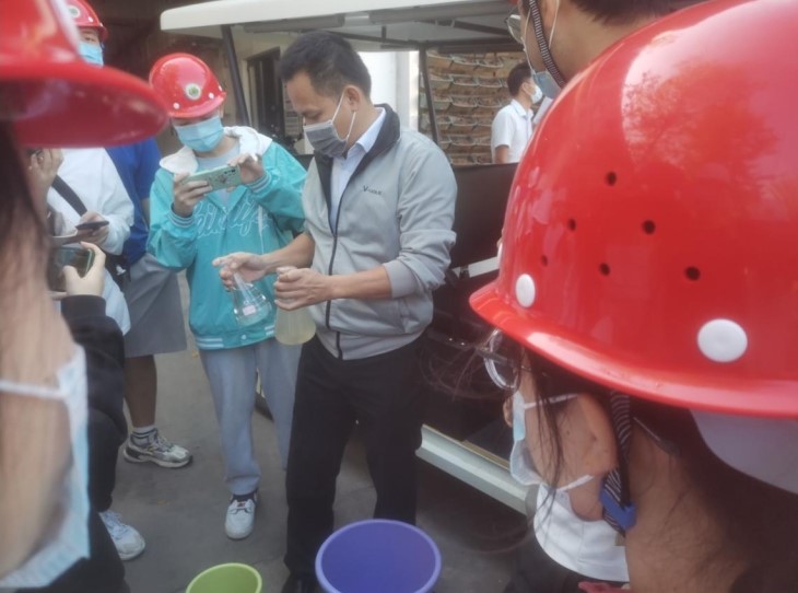 三亚市高峰垃圾填埋场安排工作人员带领同学们参观填埋库区,详细讲解垃圾填埋过程、防渗系统、渗沥液导排系统、导气系统、雨污分流系统等,并一一回答同学们的提问。
