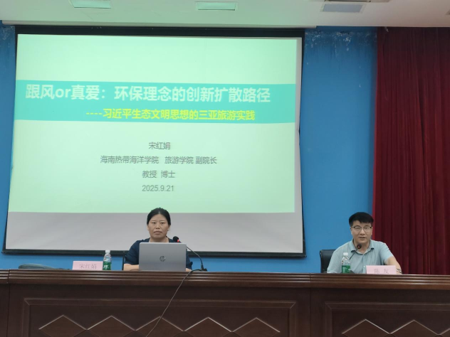 宋红娟教授先是剖析了旅游社区中环保理念的诉求核心与表达形式,再解读社区居民、旅游消费者在环保行动中的角色定位。最后指出,海南自贸港建设在推动旅游业迅速发展的同时,旅游社区环保压力也随之增大,垃圾处理、水资源保护、生态破坏等问题逐渐凸显,成为制约可持续发展的关键因素。