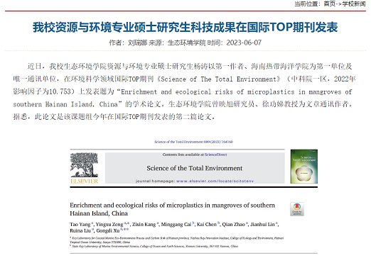 在论文撰写阶段,曾映旭老师在论文构思、框架构建、数据分析、初稿撰写、修改投稿等各个过程都给予细致的论文写作辅导。研究生杨涛印象最为深刻的是曾老师在春节期间仍在不辞辛劳地修改他的英文论文,正是历经多次打磨和提升,最终版的文章得到了编辑和审稿人的一致认可,最后成功地发表在了环境科学领域顶级期刊《Science of The Total Environment》。